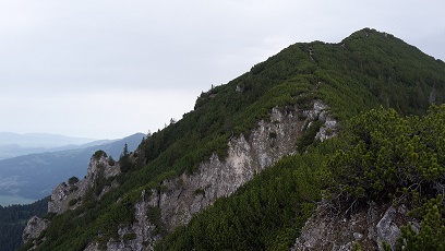 Und hier kommt schon der Gipfel des Loischkopfs in Sicht.Schneereste ergeben ein schönes Bild, und das Wetter ist bestens. |